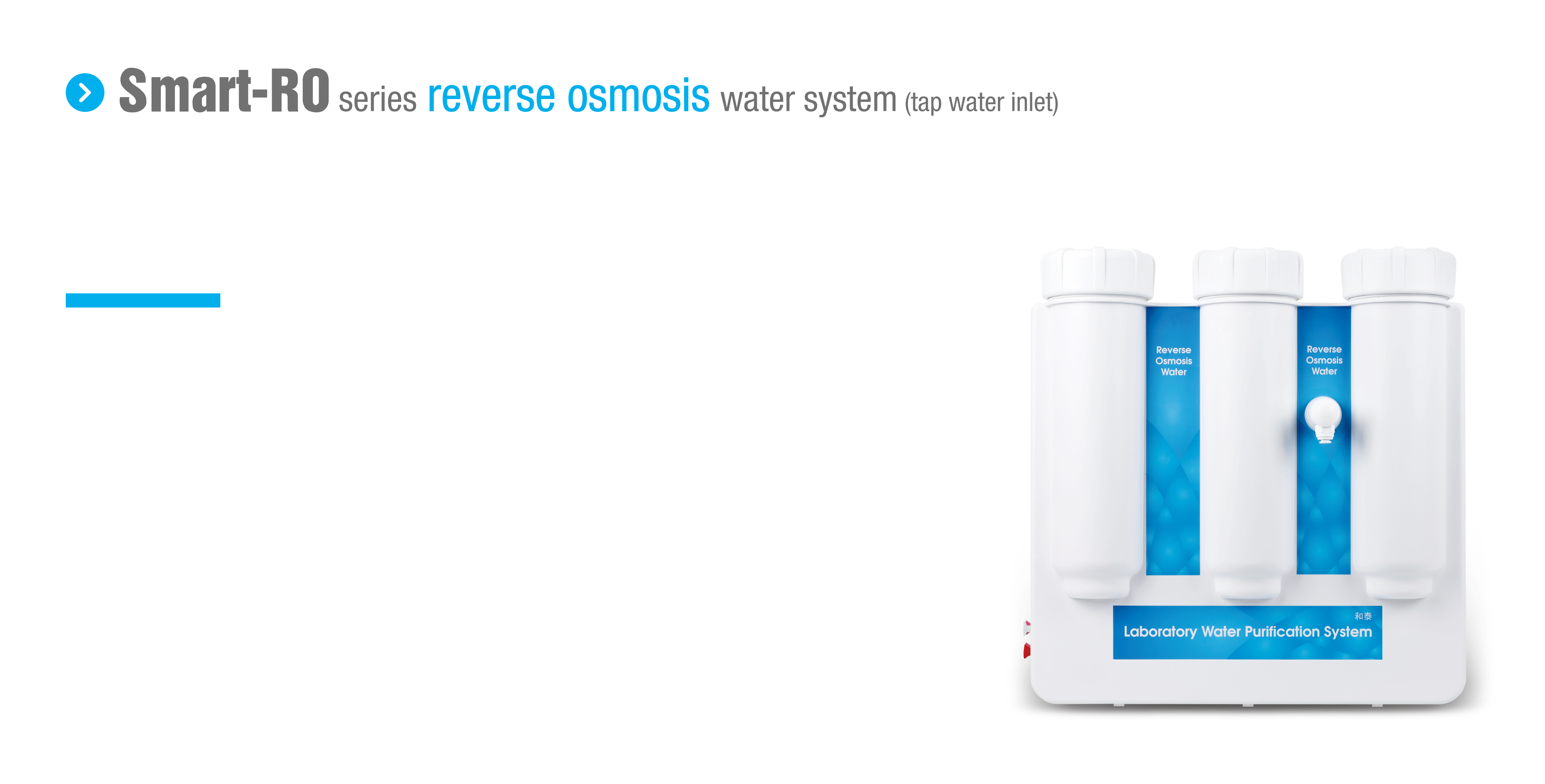 With tap water inlet,the largest capacity is 240 liters per day. It can produce single stage RO water and deionized water. The single stage RO water´s ion rejection rate is more than 97%,and deionized water is stable grade II pure water with resistivity>5MΩ.cm(25°C),TOC<30ppb,and the lowest running cost.