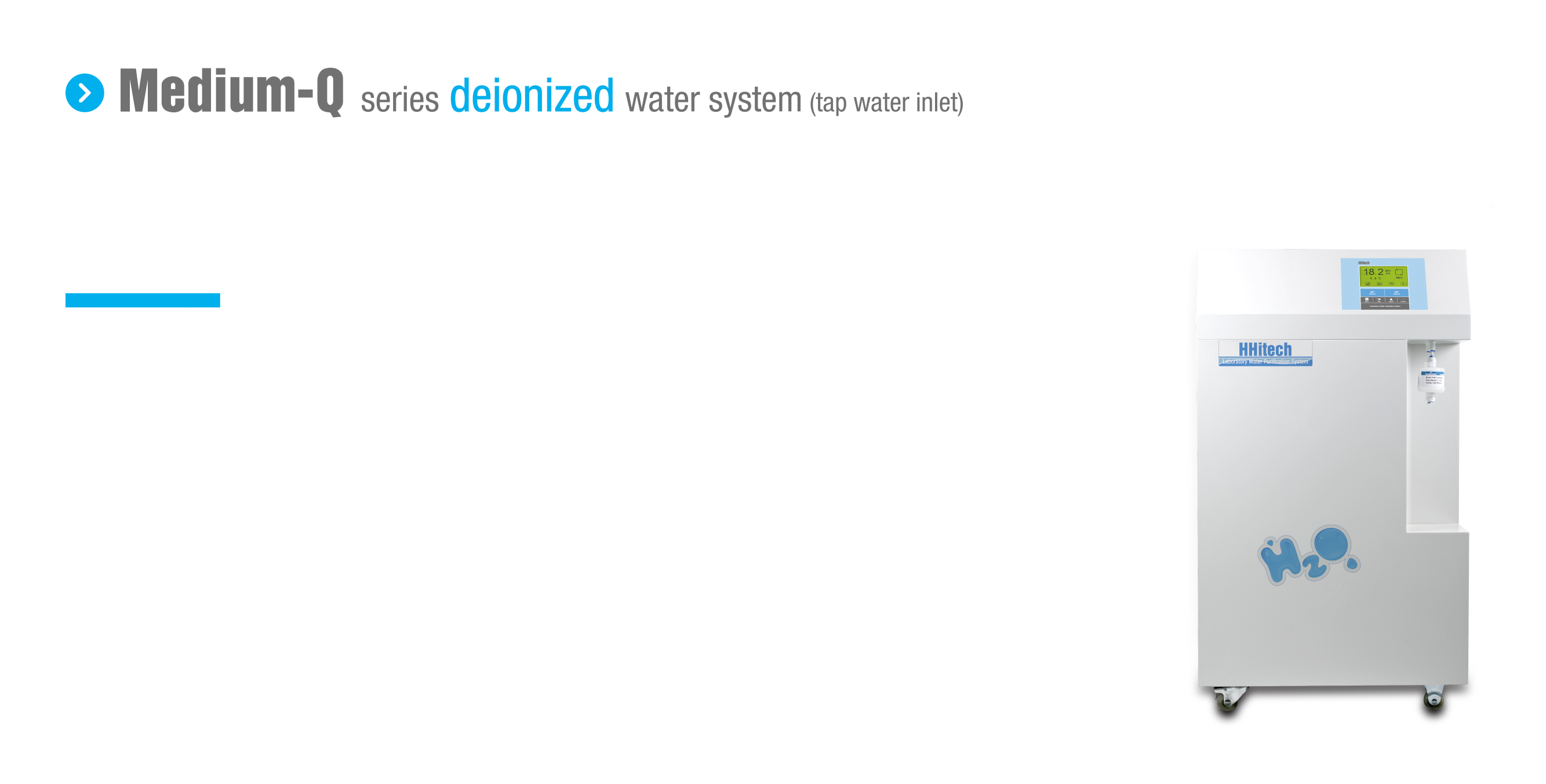 With LCD controlling system, 3 way water quality sensor, cartridge replacing alarm, timing and quality dispensing, stainless steel shell, built-in 2 set pressure tanks, single stage RO system and 1 pump, Medium-Q series deionized water system is superior choice of deionized water’s mass usage for general grade experiments.