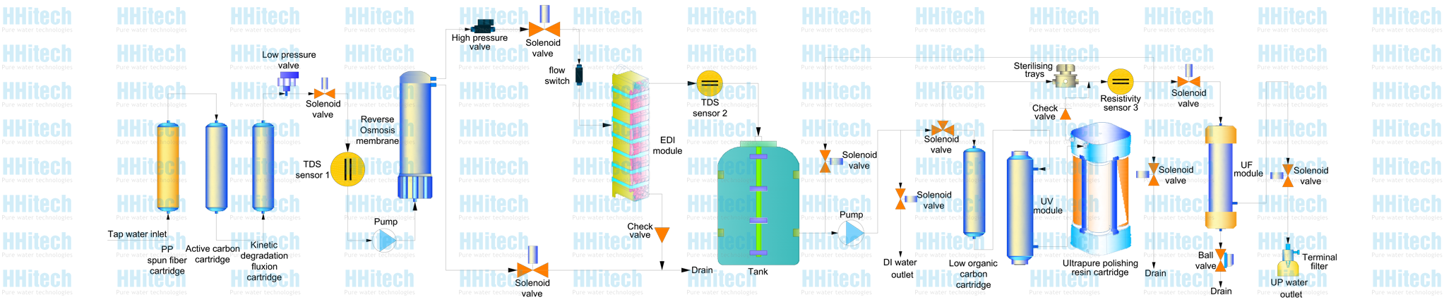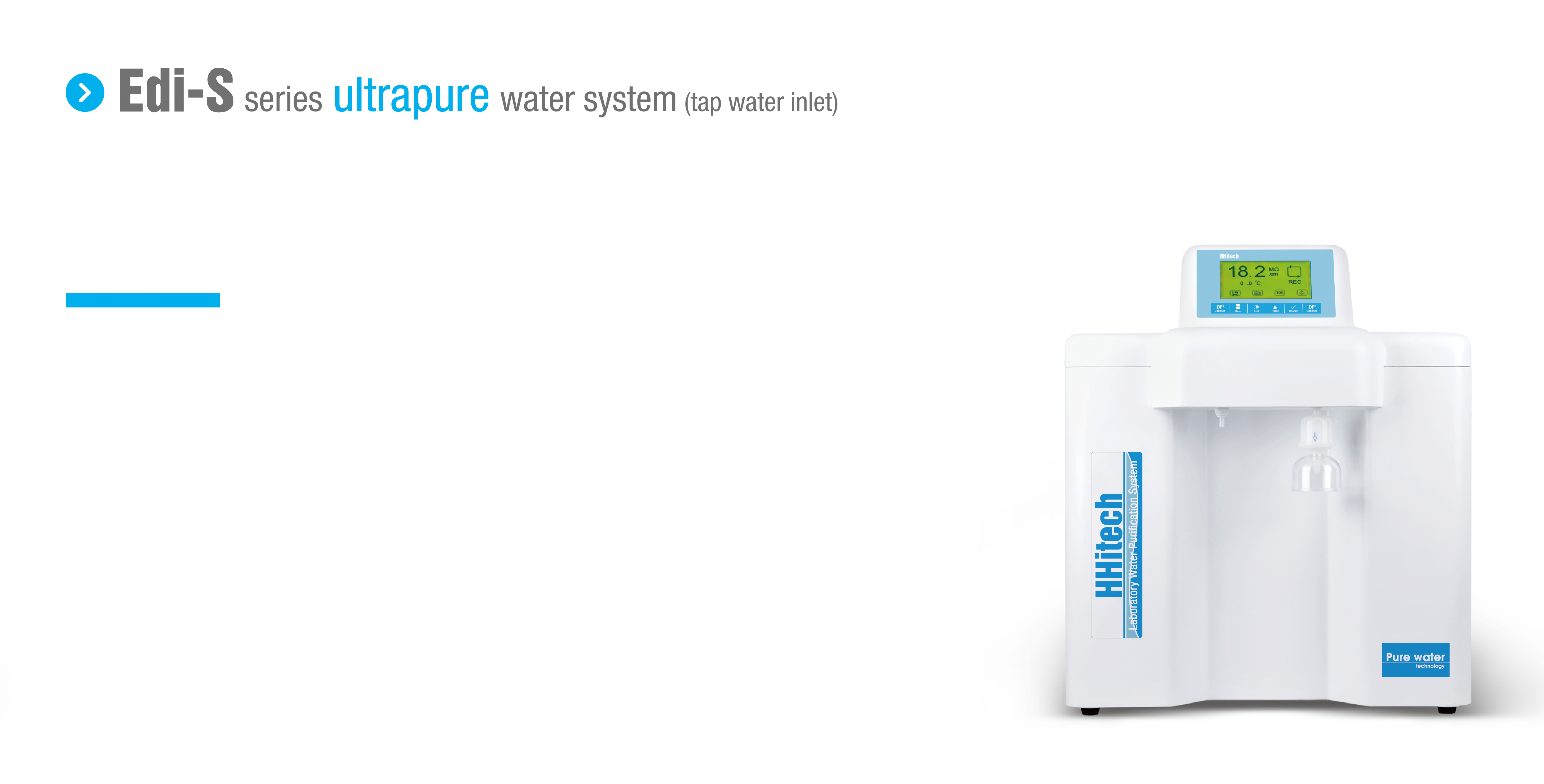 With LCD controlling system,3 way water quality sensor,timing and quality dispensing,single stage RO system,2 pump and Ionpure® EDI module,Edi-S ultrapure water system is superior choice of ultrapure water for high grade experiments.