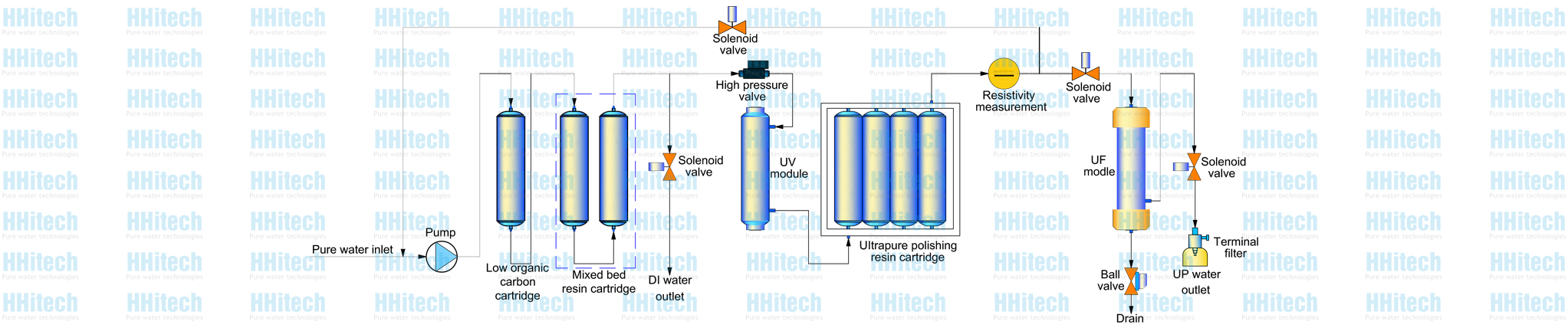 With pure water or distilled water inlet, its output is up to 2 liters/minute. It can produce deionized water and ultrapure water. The deionized water’s resistivity is above 5MΩ.cm, and the ultrapure water’s resistivity absolutely reaches to 18.2MΩ.cm. It completely meets the highest grade I standard of ASTM, CAP, CLSI, EP and USP.