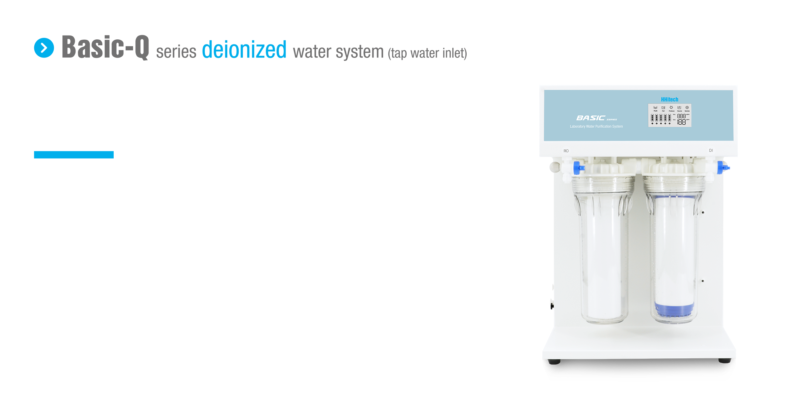 With LED controlling system, single stage RO system, 1 pump, and portable TDS/conductivity test pen, Basic-Q series deionized water system is basic choice of deionized water for general grade experiments.