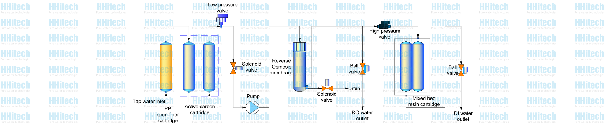 Pure water outlet 2: reverse osmosis water, deionized water
