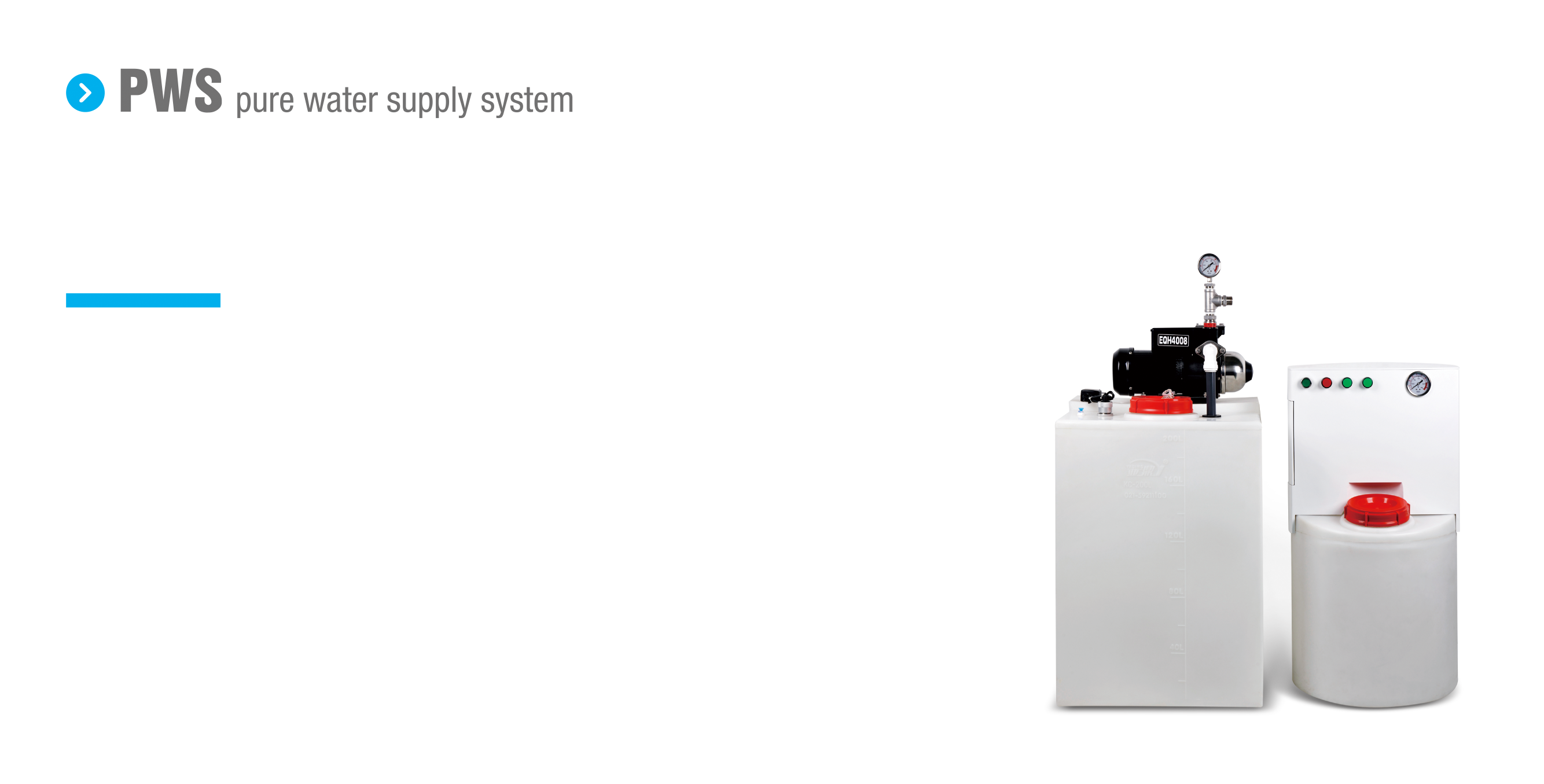 PWS series pure water supply system can combine with any brand´s water purification system to supply pure water for specific equipment, for example, cleaning machine, biochemical analyzer, immunoassay analyzer, constant temperature and humidity chamber, salt spray test chamber, dampening machine, printing machine, laser engraving machine, cooling device and etc. It also could be used for the central water supply.