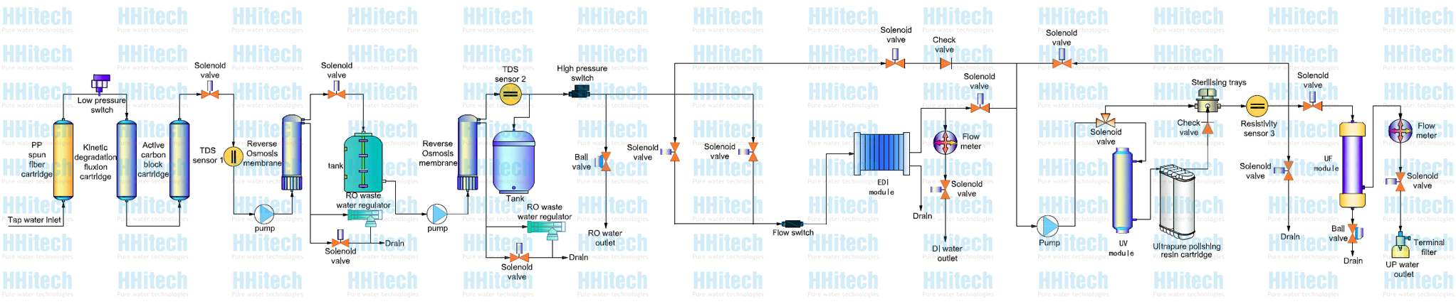 Standard configuration Main body (Including 1 set of cartridge)+built-in 20 liters PE tank and 20 liters pressure tank