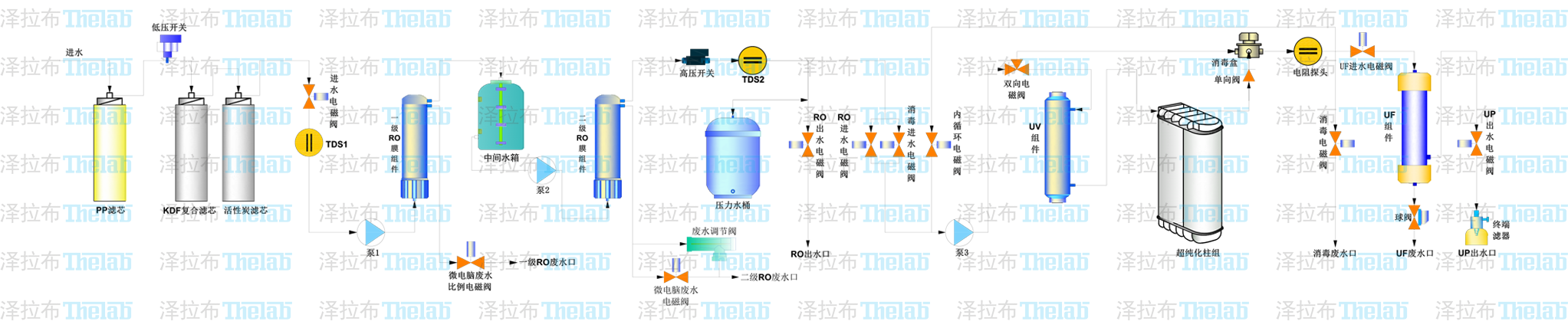 以自来水为水源,方便快速的制造双级RO反渗透水和UP超纯水。