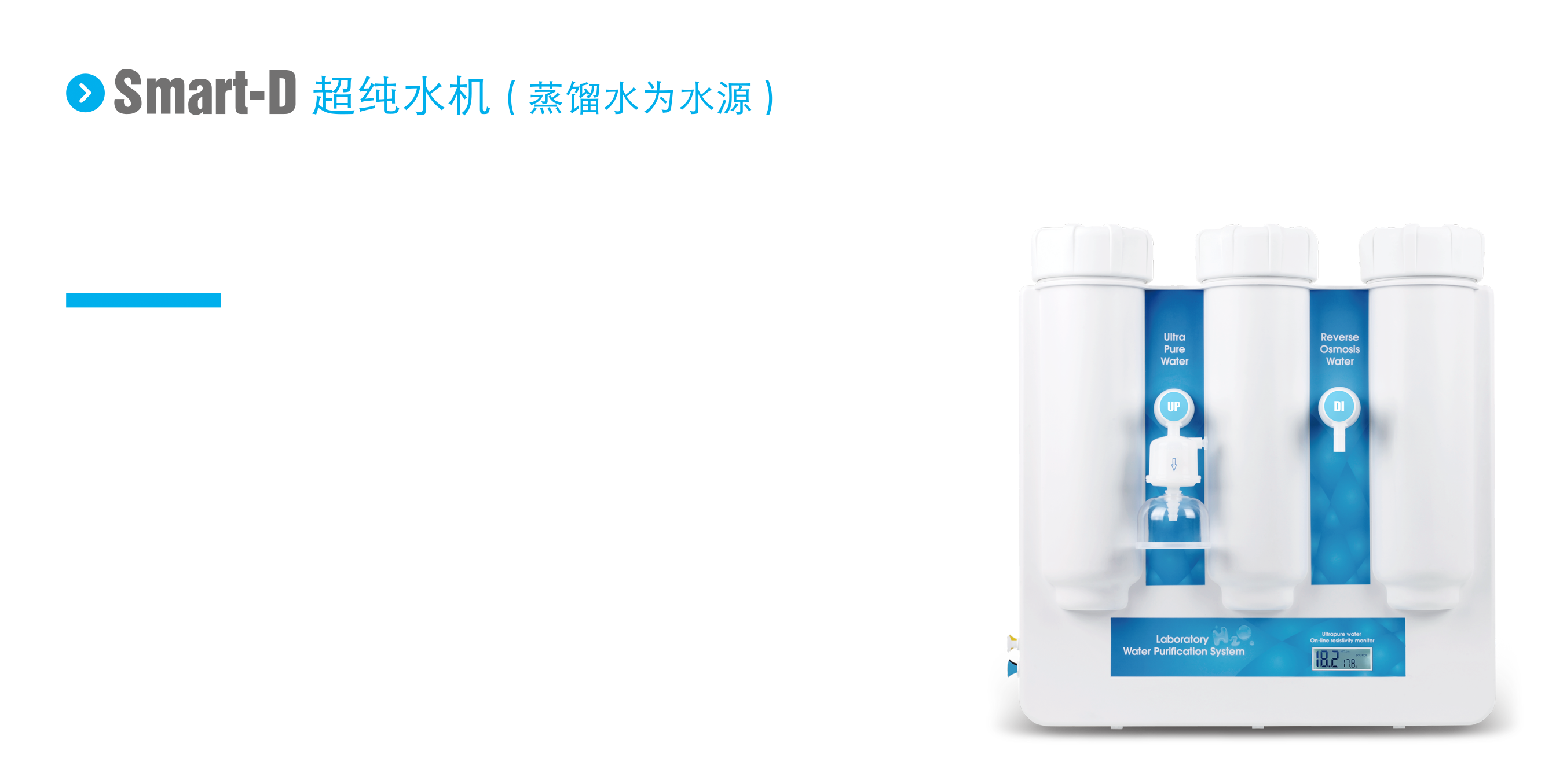高级别实验室用超纯水的经济选择,以蒸馏水等纯水为水源,每分钟产水量多达2.0升,电阻率达到18.2MΩ.cm,相比自来水进水的机型,产水质量更加稳定可靠,完全符合GB/T6682-2008、GB/T33087-2016、ASTM、CAP、CLSI、EP和USP制定的Ⅰ级水质标准。