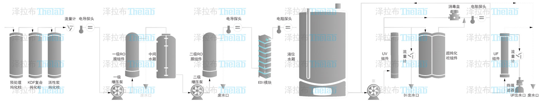 1 路源水流量统计,EDI 去离子水和UP 超纯水2 路高精度定量取水功能.