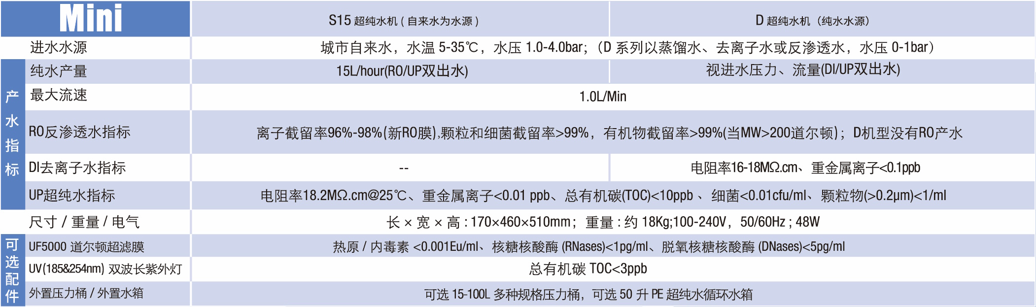 预处理、RO膜、UV灯和超纯化柱的寿命可设定,显示耗材寿命剩余时间,到期更换自动提醒,避免水质下降.